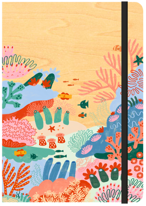 A5 Wood Cover Journal (Blank) - Colourful Corals