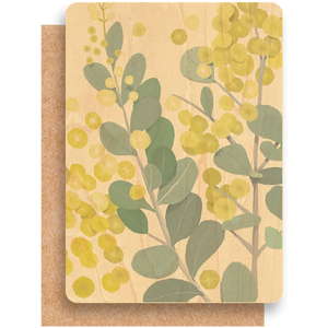 Golden Wattle Design | Daniella Germain Wood Greeting Card | Greenigo