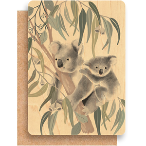 Wood Greeting Card - Koala Cuddles