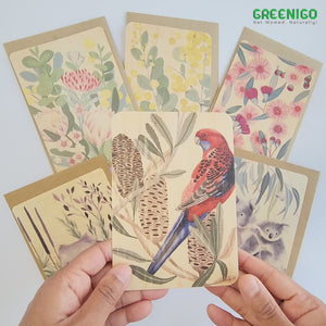 In her illustrations for Bush Greetings, Daniella has captured the texture, colour and uniqueness of Australian flora and fauna with fine line work combined with bold colours.