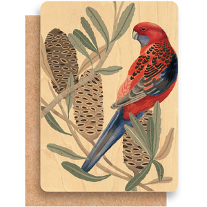 Wood Greeting Card - Rosella with Banksia